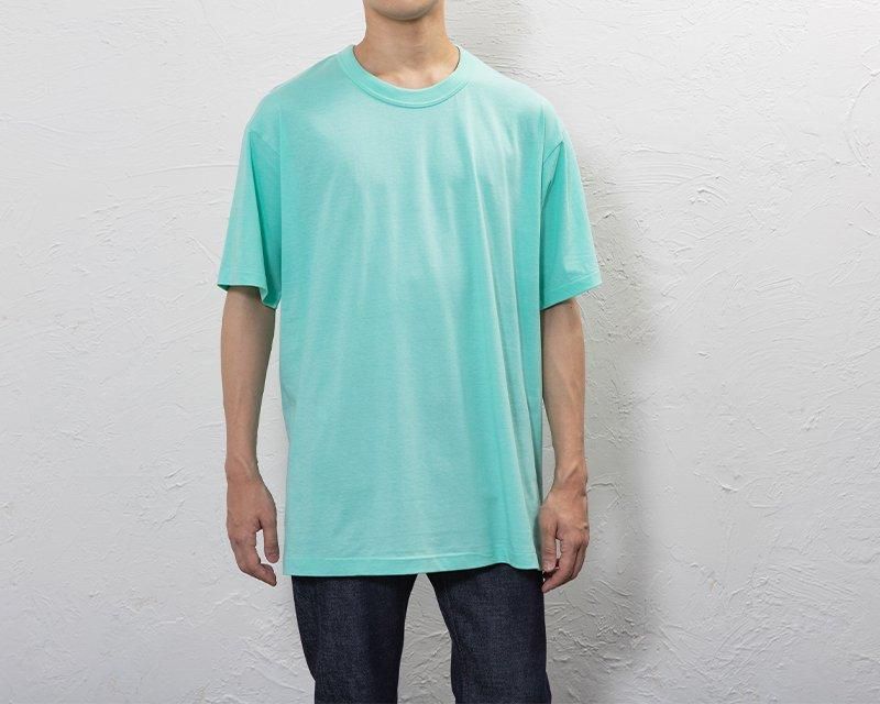 空気が1枚はいっているような適度なフィット感のシルエットです。軽やかな身生地に合わせた衿生地もバインダー衿でしっかり縫製することで度重なる洗濯にも伸びきらず、袖口、裾は横の引っ張り強度に優れた天地引き縫製をすることで長くご愛用頂けます。日本のTシャツ好きに愛されてきた1枚です。