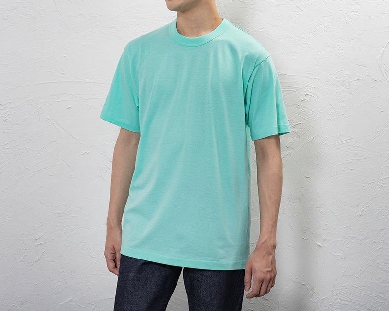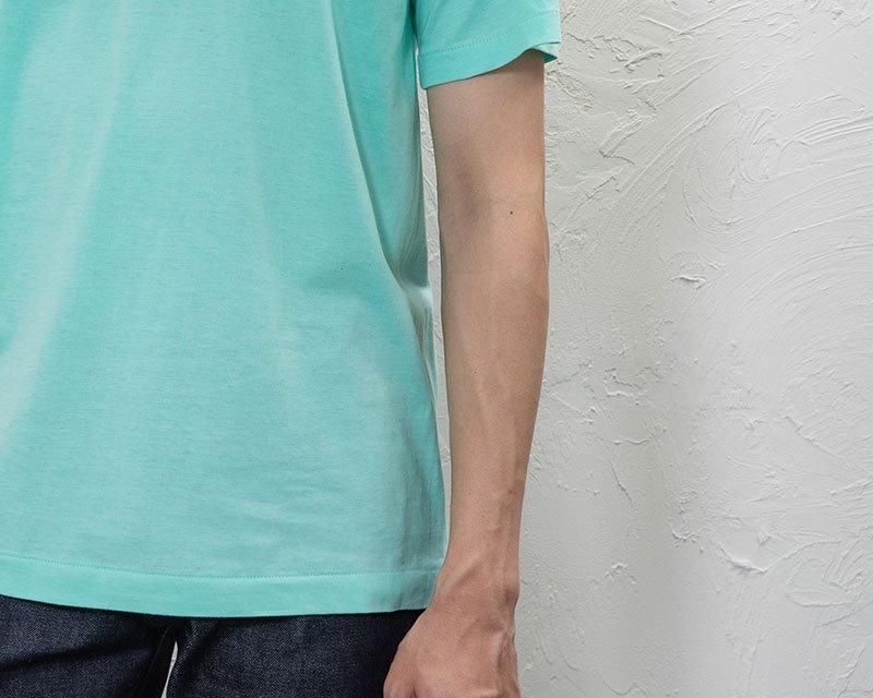 空気が1枚はいっているような適度なフィット感のシルエットです。軽やかな身生地に合わせた衿生地もバインダー衿でしっかり縫製することで度重なる洗濯にも伸びきらず、袖口、裾は横の引っ張り強度に優れた天地引き縫製をすることで長くご愛用頂けます。日本のTシャツ好きに愛されてきた1枚です。