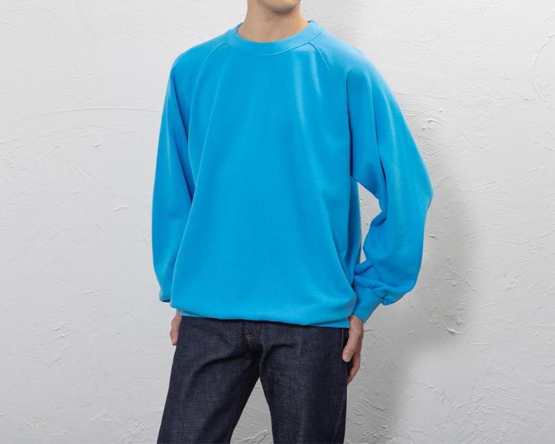 衿もとから脇下に切り返しを入れたラグランスリーブは身体のラインに自然にフィットしてとても動きやすく、ワークウエア・スポーツウエアとしても最適です。衿と袖口、裾部分には洗濯を重ねても伸びにくいスパン・フライスを使用しているので、永いご愛用にこたえます。しっかりと編み込んだ綿100%裏パイルの身生地は素肌に心地よく、裏起毛の様に洗濯して痩せる事がありません。適度な厚みを持ち、洗いこむ程に体になじんできます。