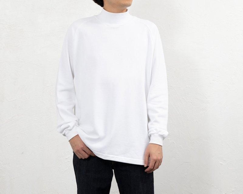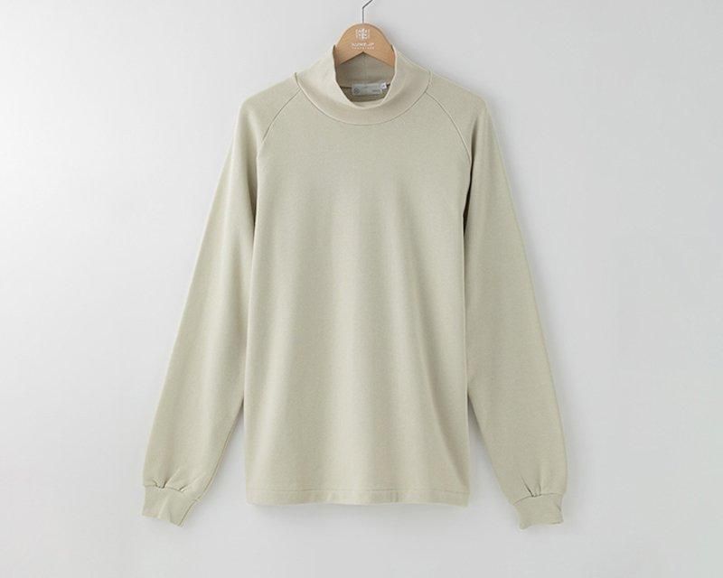 動きを妨げないラグランスリーブと袖口リブで、自然な落ち感のシルエット。ぴったりしないゆとりのあるサイズ感で1枚で着ても様になります。衿部分は、ちくちくしない地肌に優しい綿素材で快適にお過ごし頂けます。 裾はリブの無い軽やかな仕立てに。ボトムスにタックインするなどアレンジ自在に着こなせます。ビジネスシーンのカジュアル化が進む今、淡色のジャケットやコートに合わせても襟が汚れず、首元をスマートに見せる便利な1枚です。