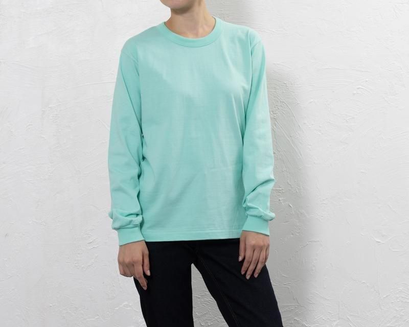目指したのは、天然素材であるコットンの良さを活かし、厚手の生地ながらゴワゴワせずに着心地の良い「日常使いのヘビーウェイトT」。リラックス感がありながらルーズ過ぎないシルエットは着こなしやすく、ヘビーウェイトTシャツは初めてという方も気負わずにお試しいただきたい一品です。また秋冬に向けた新作として、袖口がリブ仕様の長袖もリリースいたしました。 腕まくりでアクセントを付ける着こなしも楽しめ、長いシーズン着られるヘビーウエイト・ ロングスリーブTシャツです。