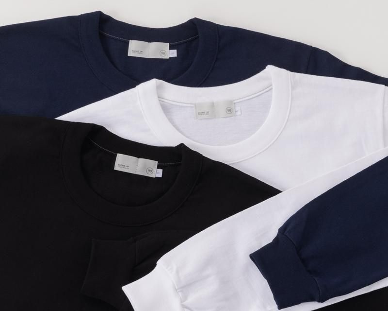 目指したのは、天然素材であるコットンの良さを活かし、厚手の生地ながらゴワゴワせずに着心地の良い「日常使いのヘビーウェイトT」。リラックス感がありながらルーズ過ぎないシルエットは着こなしやすく、ヘビーウェイトTシャツは初めてという方も気負わずにお試しいただきたい一品です。また秋冬に向けた新作として、袖口がリブ仕様の長袖もリリースいたしました。 腕まくりでアクセントを付ける着こなしも楽しめ、長いシーズン着られるヘビーウエイト・ ロングスリーブTシャツです。